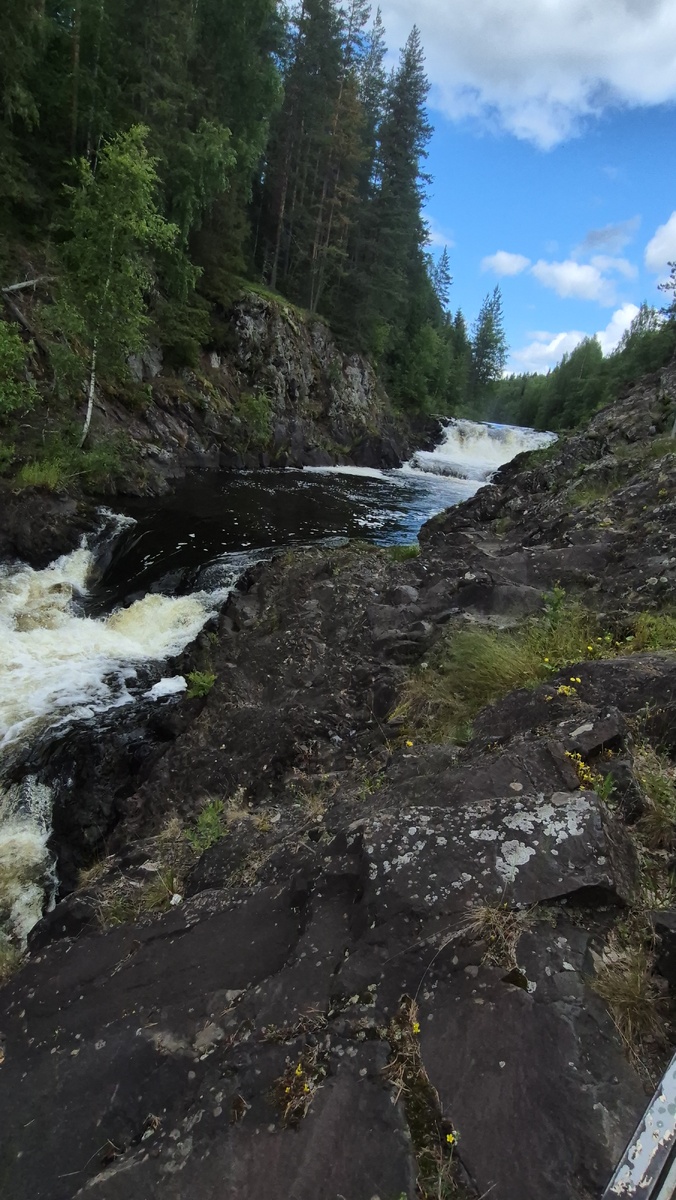 Кивач: его пенящиеся воды устремляются вниз, а за ними простирается широкая река, обрамлённая густой зеленью высоких хвойных и лиственных деревьев, тянущихся к голубому небу. Атмосфера спокойствия и одновременно первобытной мощи природы ощущается во всём. Это был момент истинного единения с окружающей красотой и друг с другом, одна из тех картинок, которые навсегда остаются в памяти и согревают душу.