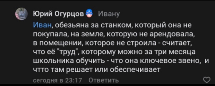 Всю жизнь нам твердили, что твой труд ничего не стоит и будь благодарен за то, что тебе вообще дали лопату и позволили работать на господина. На твоё место целая очередь желающих работать лучше и за меньшие деньги, но щедрый господин по своей душевной доброте позволяет тебе РАБотать на него. Господа часто считали своих сотрудников не наёмными работниками, а своей собственностью, холопами с соответствующим отношением. Вскоре, народ стал понимать, что что-то здесь не так. Молодые люди не желают терпеть подобное отношение. Образовался тот самый кадровый голод, о котором было так много разговоров. Раскрылась долго скрываемая правда - простые рабочие и есть ключевое звено, обеспечивающее благо любой компании. Без низовых сотрудников ни одна компания существовать не может. Без рабочих вся экономика, всё хозяйство встанет. Мужчины, уважайте себя! Цените свой труд и пресекайте любые попытки его обесценить! Ваш труд должен стоит дорого. Помните, что от Вас зависит немногое, от Вас зависит ВСЁ!