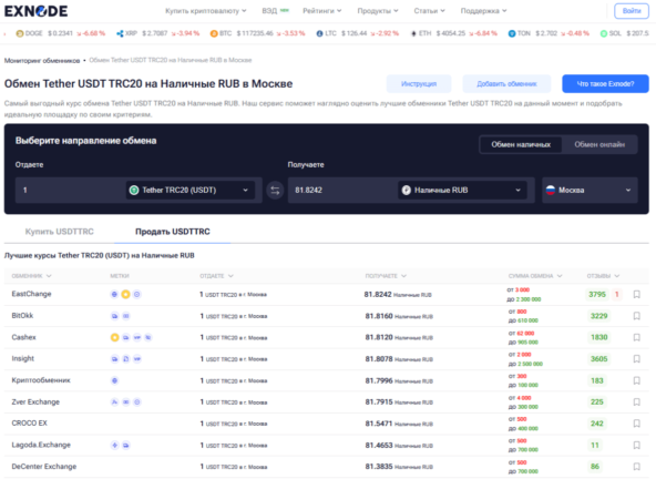 Чтобы подобрать лучший курс и не переплачивать, стоит использовать сервис мониторинга Exnode — платформу, которая показывает актуальные курсы и рейтинг обменников в реальном времени. С его помощью вы можете заранее выбрать проверенный обменник в Москва-Сити и купить USDT с максимальной выгодой.