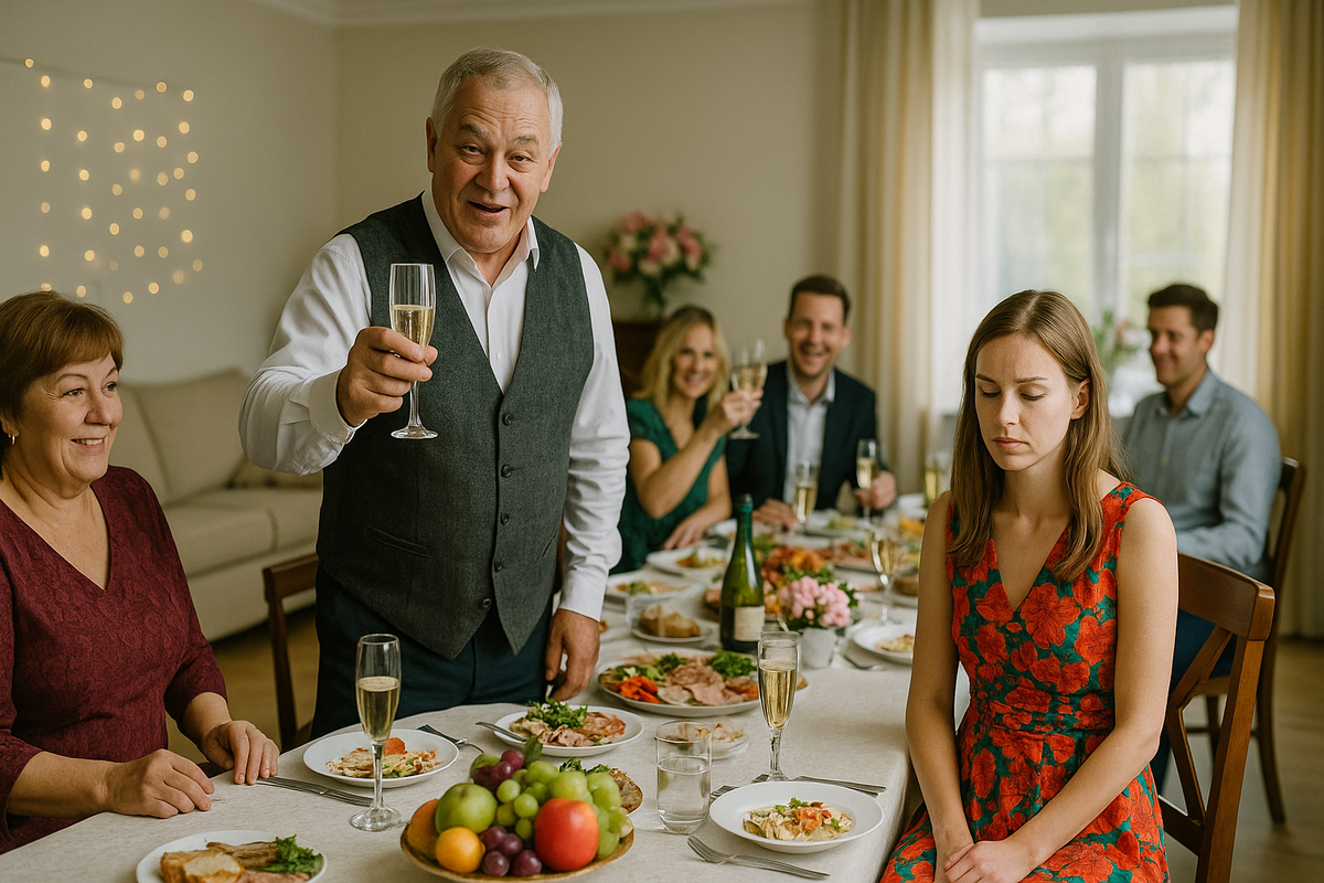 Начались тосты. Гости по очереди поздравляли именинника, желали здоровья, успехов, долгих лет жизни. Владимир Петрович благодарил, шутил, рассказывал истории из молодости. Настроение было приподнятым, все смеялись, пили, ели.