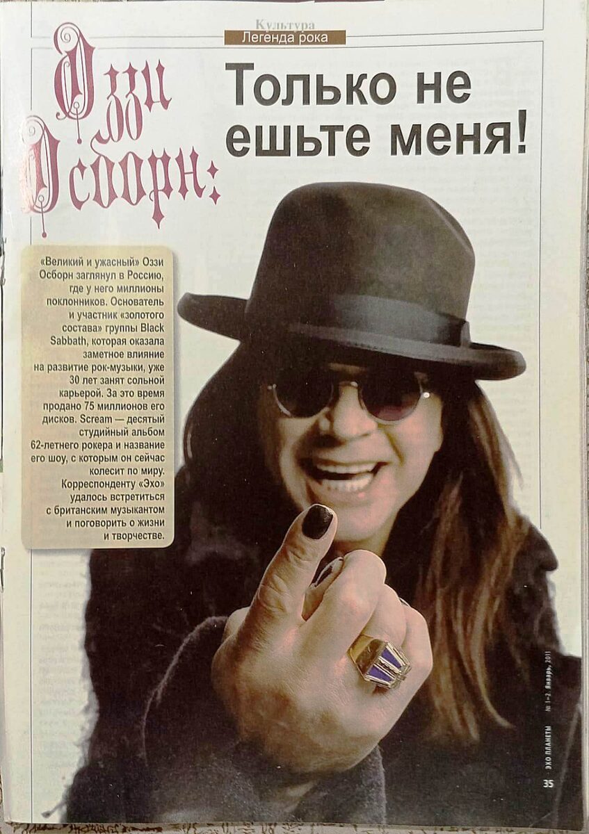Ещё одна статья о великом и ужасном Оззи из журнала "Эхо планеты" № 1-2 (14-20 января 2011г.) Фото из личной коллекции. Всего доброго... Берегите себя ...