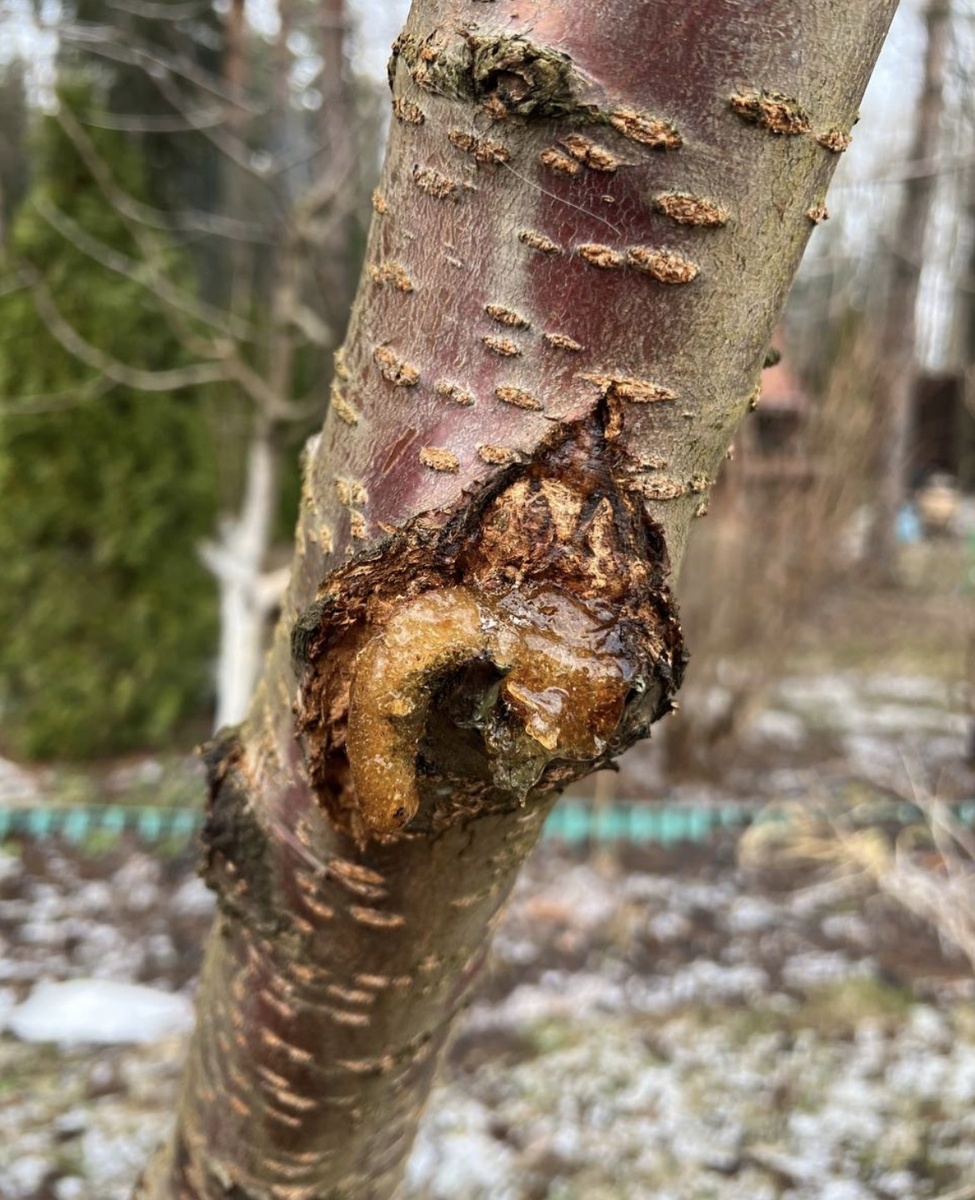 У нас на участке растут 4 черешни. И много лет на каждом стволе появляется камедь. Камедь черешни - это смолистое вещество, которое дерево выделяет для заживления ран на коре. Раны появляются от мороза, жары, слишком кислой почвы и недостатке кальция в почве. А все косточковые любят кальций, иногда просто из-за травмы на дереве. Везде пишут, что это не очень хлрошо для дерева, но черешни растут уже много лет и камедь на них была практически всегда. То, что не очень хорошо для дерева полезно для нас, особенно для пищеварения. Камедь, которую также называют вишневым клеем или гумми, представляет собой вязкую жидкость янтарного цвета, которая со временем затвердевает на воздухе. Её появление на стволе или ветках черешни (явление называется камедетечение или гоммоз). Чем же полезна камедь для человека? В детстве мы часто жевали смолу от сосен. Не очень вкусно было, но дети по моему все в рот тащили. Польза для желудочно-кишечного тракта: Камедь содержит арабинозу и галактозу, что наделяе