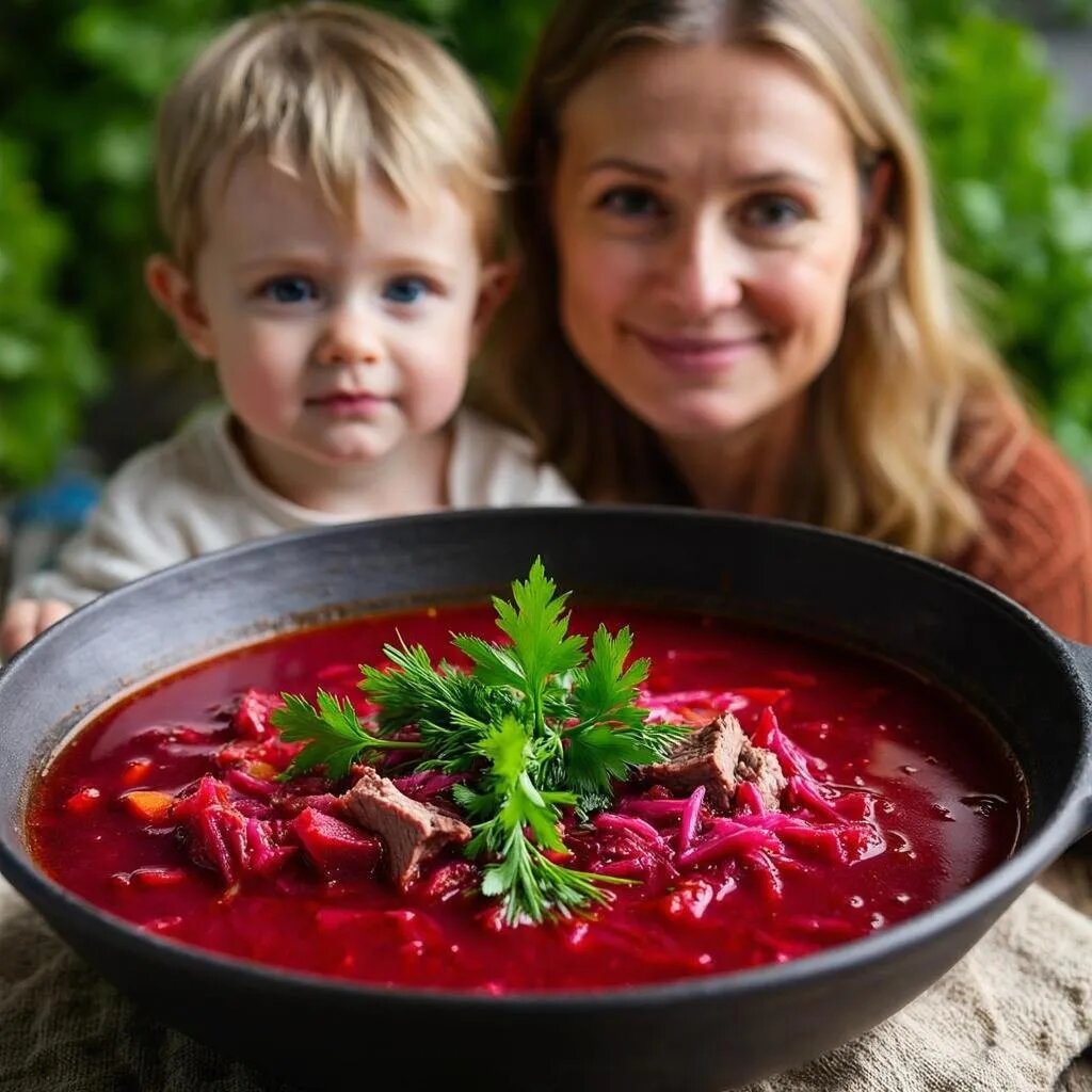 - ✅ Двойная подготовка свеклы (томление в соусе и последующее добавление в бульон) гарантирует, что борщ будет не только алым, но и насыщенным по вкусу.