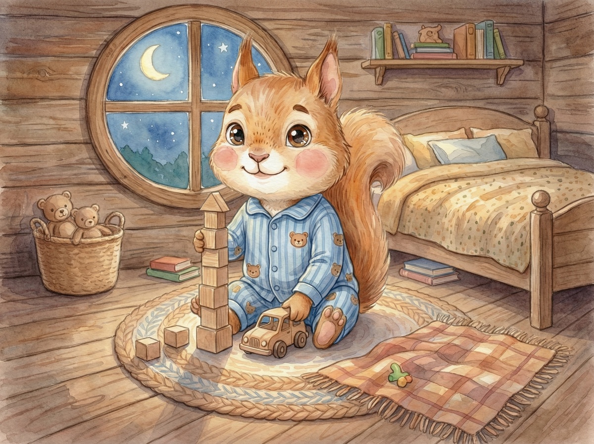 Короткая сказка на ночь про бельчонка Тишку, который не любил вовремя ложиться спать. Поучительная история для детей о важности режима и здорового сна. Добрая сказка про животных, которая объясняет, почему нужно соблюдать распорядок дня. В уютном дупле старого дуба жил-был маленький бельчонок Тишка. Неугомонный и весёлый, он мог часами резвиться в лесу, прыгая с ветки на ветку до самого вечера. Каждый раз, когда мама звала его домой и напоминала, что пора спать, Бельчонок только хитро улыбался. — Мама, ну почему нужно ложиться так рано? — спрашивал он. — Я ещё совсем не хочу спать! И вместо того чтобы укладываться в свою мягкую постельку, он принимался играть: то катал по полу орехи, будто мячики, то строил высокие башни из кубиков, то шептался со своим другом — заводным зайчиком-прыгуном. А за окном тем временем давно погасли последние лучи солнца, и в тёмном небе над лесом зажглись яркие-яркие звёзды. Но однажды с бельчонком Тишкой приключилась история, которая заставила его зад