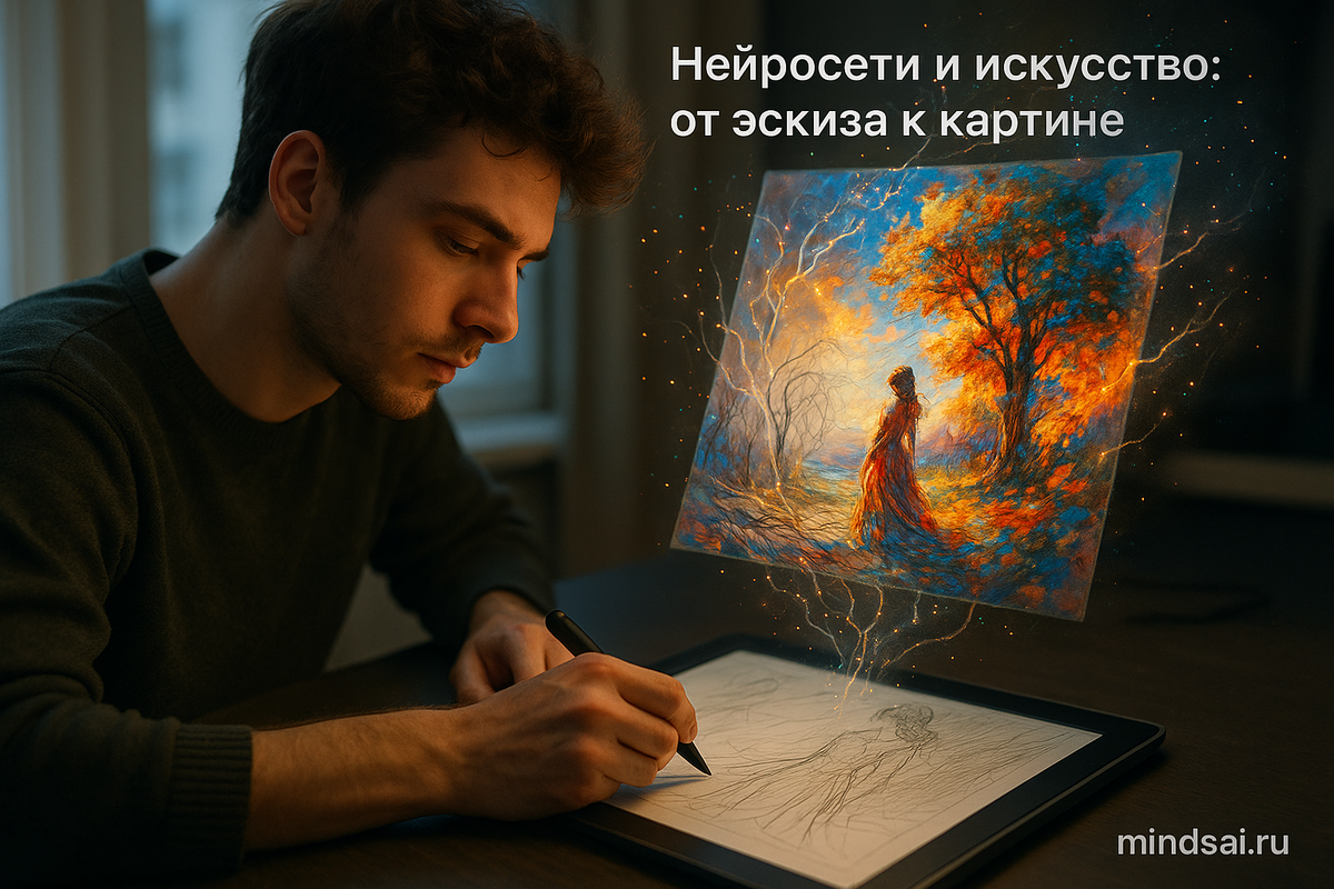 Если раньше для создания картины нужно было потратить часы на прорисовку деталей, то сегодня достаточно набросать эскиз и описать словами, что ты хочешь получить. Остальное делает ИИ. Он анализирует линии, цвета и стиль, превращая черновик в реалистичное или стилизованное изображение — от цифрового портрета до концепт-арта. Один из самых популярных бесплатных инструментов — Scribble Diffusion.