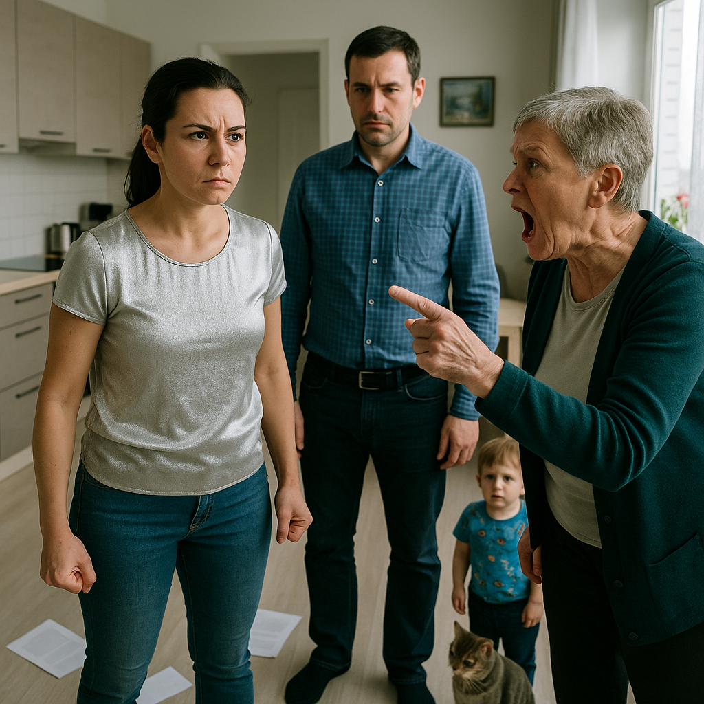 Пакет с документами упал на пол кухни так неожиданно, что Катерина даже не сразу поняла, что произошло. Свекровь стояла в дверях, тяжело дышала — грудь вздымалась под темно-синим кардиганом, лицо красное, как будто она бежала через весь район. А может, и бежала. От злости люди способны на многое.