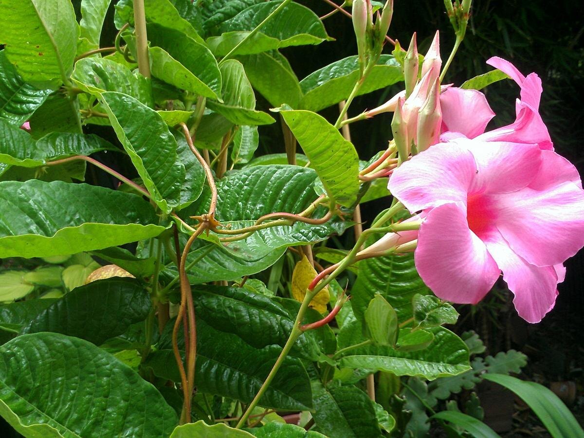 - Ошибка: слишком большой горшок.Последствие: растение наращивает зелёную массу вместо бутонов.Альтернатива: пересаживать в ёмкость чуть больше прежней — мандевилла любит "тесноту".