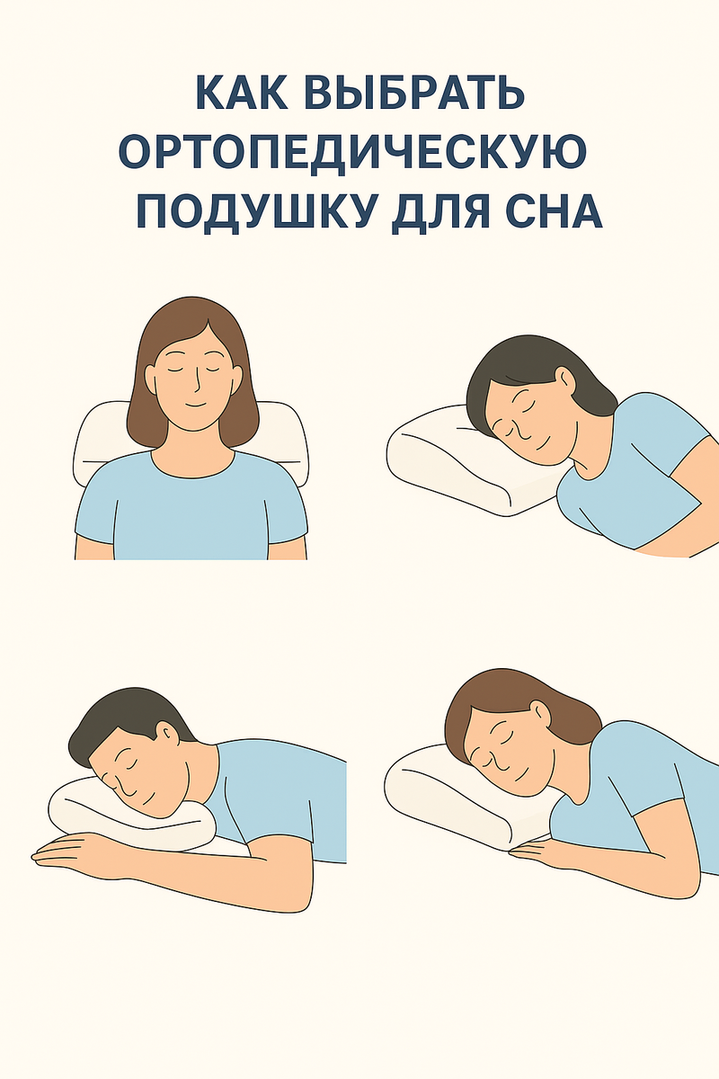Как выбрать ортопедическую подушку для сна 💤 Правильная подушка — не роскошь, а залог здорового сна и шеи без боли. Но идеальная форма и высота зависят от того, в какой позе вы спите чаще всего: 😴 На спине Лучше выбирать подушку средней высоты (8–12 см) с анатомической выемкой под шею. Она поддерживает естественный изгиб позвоночника и не даёт голове заваливаться вперёд. 💤 На боку Нужна более высокая и плотная подушка (10–15 см), чтобы шея и позвоночник образовывали прямую линию. Хорошо, если подушка имеет «валик» под шею и выемку под плечо. 😌 На животе Самая низкая (5–8 см) и мягкая, чтобы не было перегиба в шейном отделе. Иногда можно вообще обойтись без подушки, особенно если часто чувствуете боль в шее. 🛌 Если поза сна часто меняется Подойдут универсальные модели средней высоты или подушки с «эффектом памяти» — они адаптируются под положение головы. ✅ Совет: Перед покупкой лягте на подушку в привычной позе. Если шея и голова лежат в одной линии с телом — значит, высота вам по