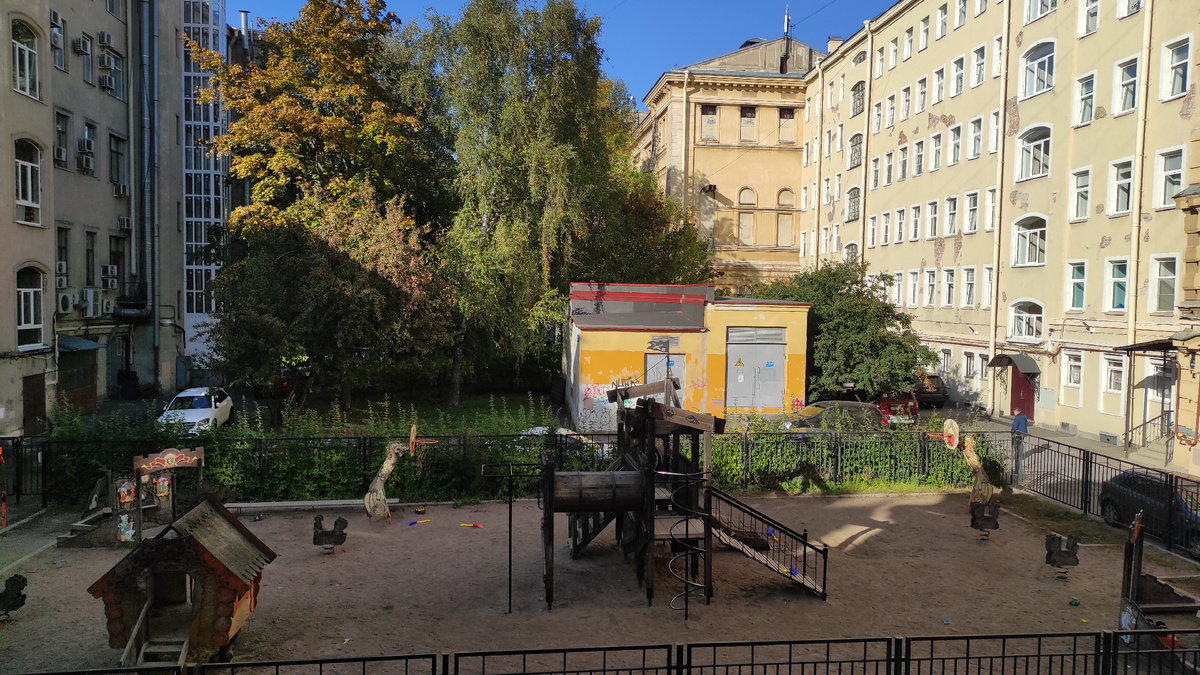 В Петербург прилетела (из Екатеринбурга) 7 октября, улетела - в ночь с 13 на 14 октября. Погода стояла очень хорошая! В последние 3 дня немного похолодало, стало пасмурно, но от этого нисколько хуже не стало. Поселилась в гостинице на Васильевском острове, в исторической части. Двор - не колодец, солнце в него проникает Выход из двора через подворотню (арку) на 12-ю линию Васильевского острова. После прохода низкой арки сразу бросается в глаза ярко-голубое небо В такую теплую погоду никак нельзя было не совершить водную прогулку. На верхней, открытой палубе - просто блаженство. Когда проплывали по Средней Невке мимо Елагина острова, решила, что обязательно схожу туда Солнце было настолько яркое, что просто слепило. Плитка и каменные стены домов выглядели очень светлыми. Продолжаю обследовать Васильевский остров, выхожу на набережную Макарова у впадения реки Смоленки в Малую Неву. Левый берег Смоленки (где находятся исторический комплекс зданий Васильевского винного городка) - н