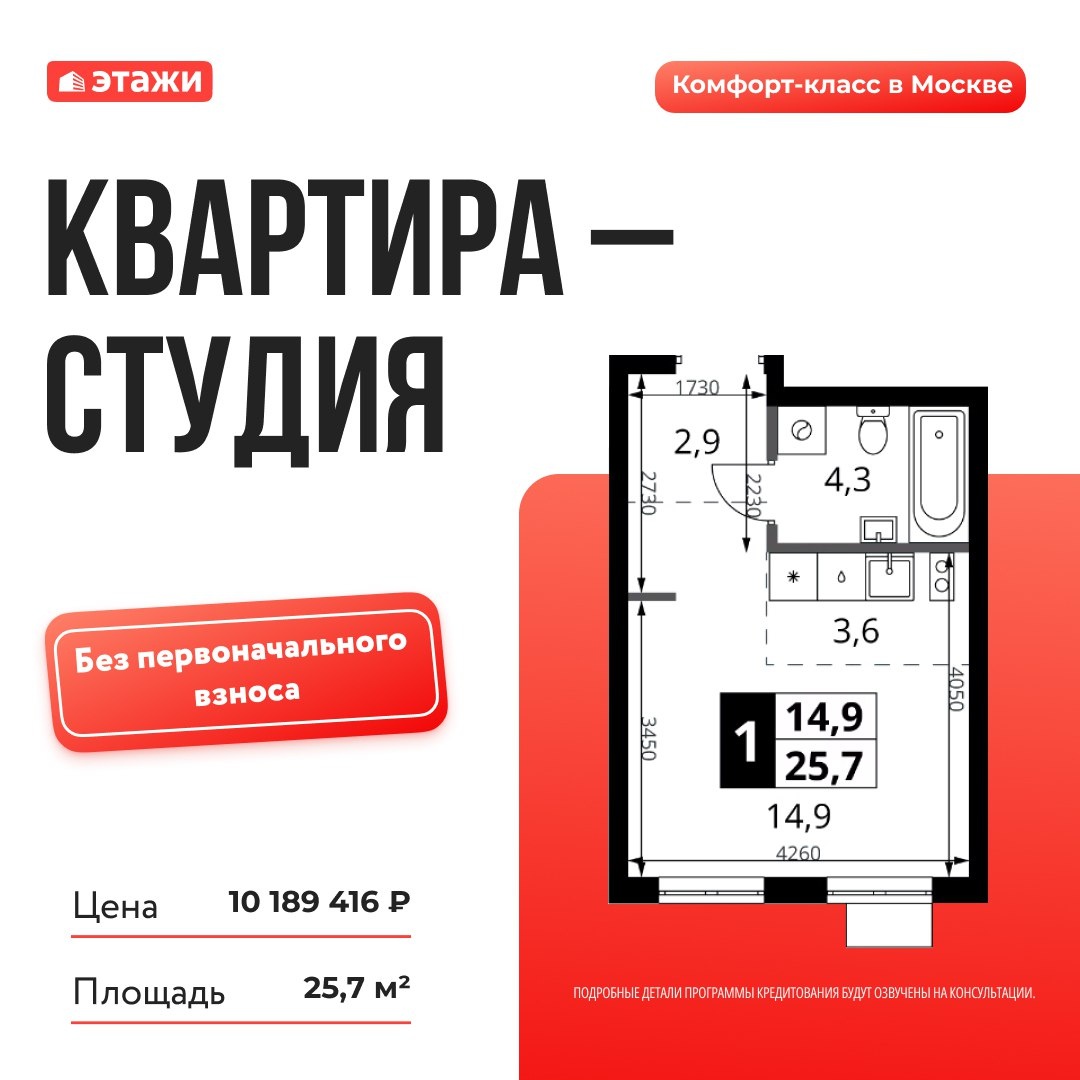 ▶️Семейная ипотека без первого взноса О проекте 🔴Сдача 3 кв. 2026 🔴Московская прописка 🔴Развитая инфраструктура 🔴7 мин. пешком до м. Корниловская Условия: Ставка 6% по семейной ипотеке Удорожание считается индивидуально Банки Дом.рф и Абсолют Расчет: Стоимость: 10 189 416 ₽ ПВ: 0 ₽ Ежемесячный платеж: 61 000 ₽ по семейной ипотеке на 30 лет под 6%