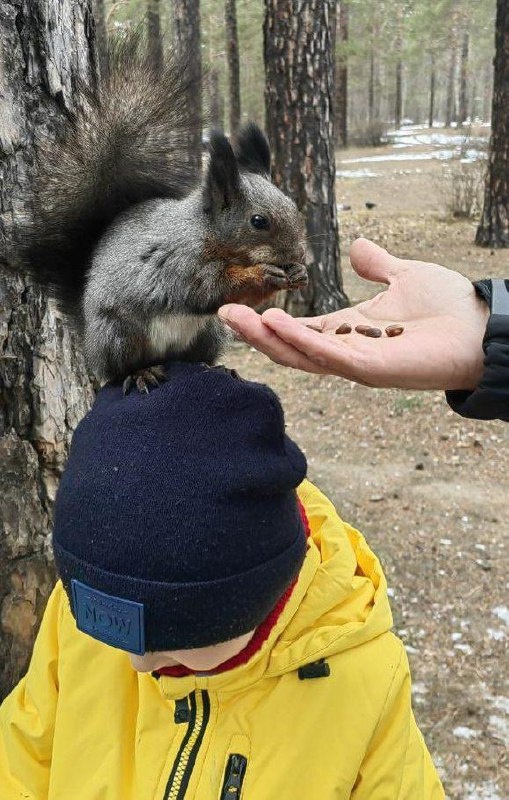 😁 На СибВО белки уже ничего не боятся: готовы залезть прямо на голову ради лакомства 🌰