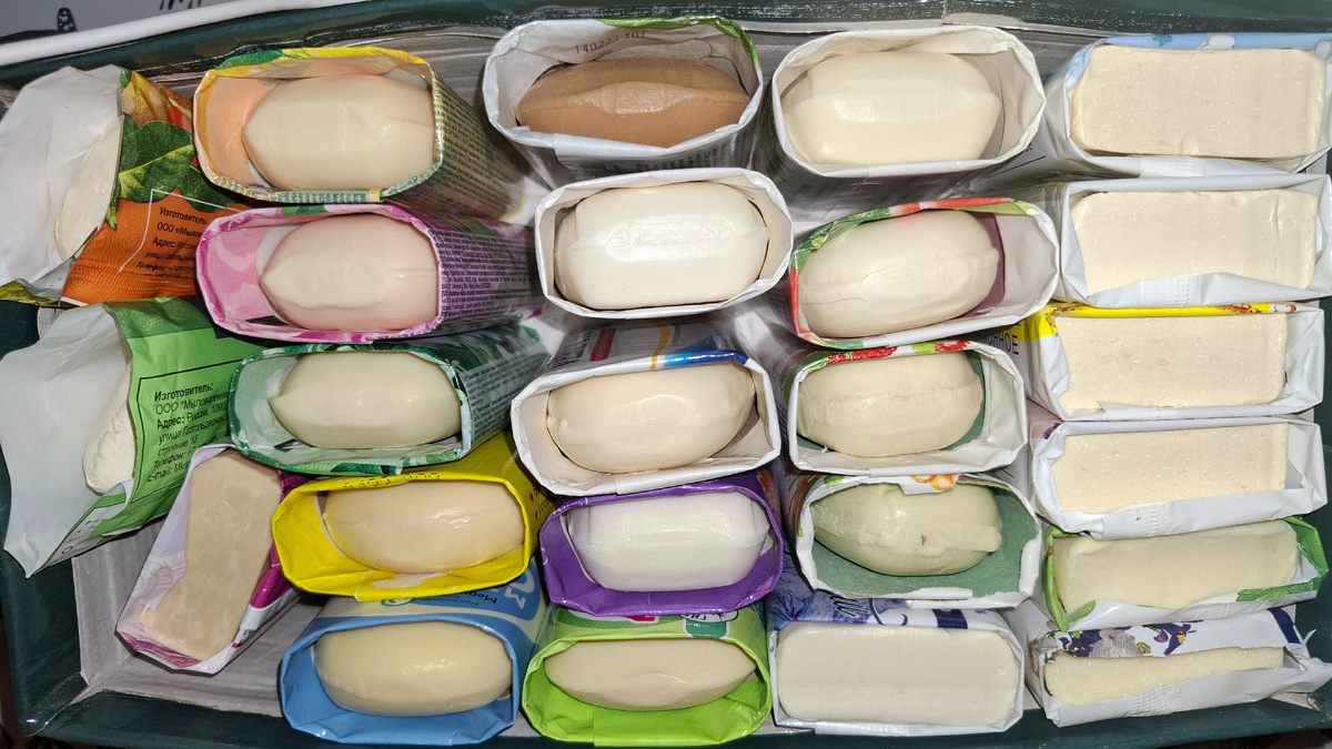 Всем привет! Очередная коробочка с мылом) Обзорчик. Мыло марки ММК : цветочное и лимонное есть небольшой аромат,банное и детское аромат основы.Мылятся хорошо,сохнут и режутся нормально) Мыло Калужский блеск,аромат очень сильный,напоминают освежители воздуха)Сохнут быстро,отлично режутся! Оливковое мыло-приятный аромат, фруктовая аллея и осенний вальс ароматы слабые.. Зато режутся эти мылки все хорошо) Эх весна..любит прогоркать..но для резки это плюс,многие любят такое мыло смотреть) Два верхних очень приятно пахнут. Детские мыльца) Ок и прилипалы без отдушек,весна и ушастый нянь очень приятный свежий аромат. Мыло Душистое облако лимон,роза,ландыш. Хороши для резки и мыления! Лёгкие ароматы. Дешёвые мыльца. МК Орхидея аромат основы,довольно приятный,похоже что хорошо подсохло,ароматное-мята,не пахнет ничем) и кажется не сохнет совсем,как нибудь попробую его порезать,цитрусовое тоже без аромата. Ну вот всю коробочку перебрали) Спасибо всем кто был со мной!)