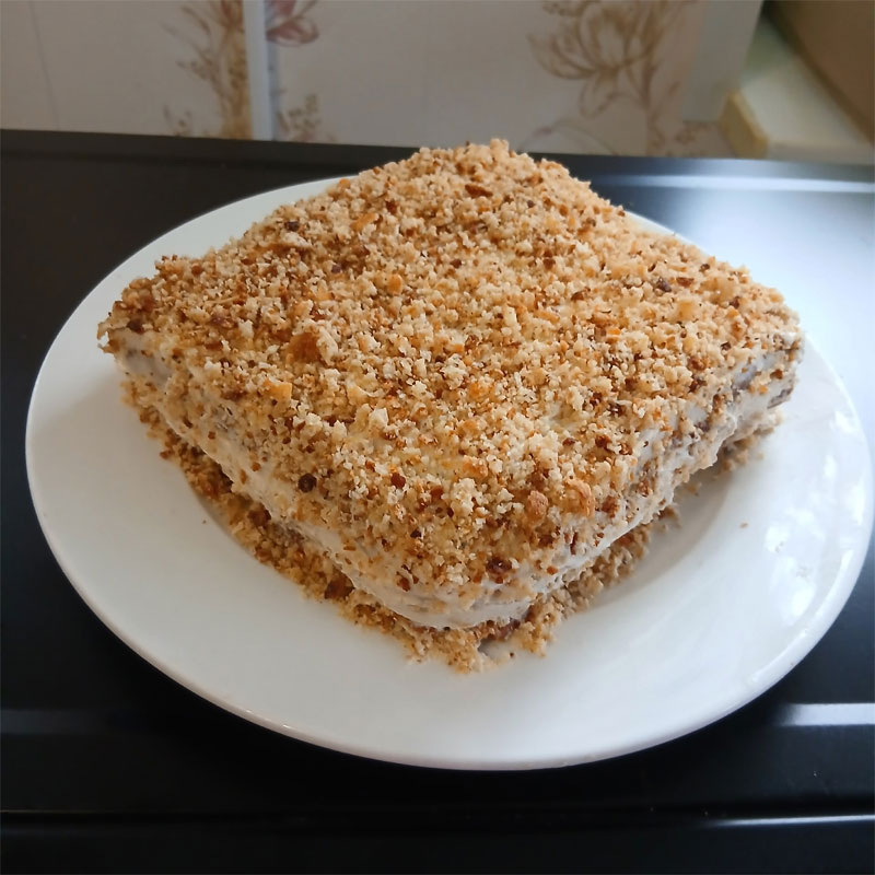 Невероятно сочный и вкусный получился тортик. Даже не ожидала. Рецепт из тех продуктов, что использовала я. Для коржа: ✔Яблоки - 200 г; ✔Яйца – 2 шт.; ✔Разрыхлитель - 10 г; ✔Мука из семечек подсолнечника - 100 г (семечки перемолоть в кофемолке); ✔Мука овсяная - 60 г (хлопья Геркулеса перемолоть в кофемолке); ✔ Соль, сахарозаменитель - по вкусу. Крем: Может быть любой. У меня - мягкий творожок (200 г) и арахисовая паста (75 г). Яблоки трём на средней тёрке, добавляем яйца, разрыхлитель, муку, соль, сахарозаменитель. Вымешиваем тесто. Распределить тесто на противне (пергамент должен быть хороший, новый, или силиконовый коврик). Выпекать при 180 градусах 20 минут. Следим за духовкой, чтобы корж не пересушить. У готового коржа обрезаем края (из обрезков делаем крошку в кофемолке или измельчителе). Разрезаем корж на 4 части. Собираем тортик - корж, крем, корж, крем и т.д. Сверху и по бокам обсыпаем крошкой. Дать пропитаться (я оставила на ночь). Примерное КБЖУ на 100 г - 250/13,0/15,9/13,8.