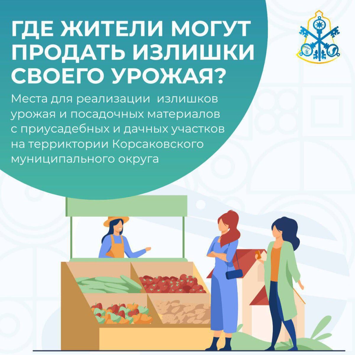 Напоминаем, что на территории района действуют площадки для продажи излишков урожая с приусадебных и дачных участков по следующим адресам: 📌Корсаков: 🔸площадка между домами № 20 и 22 по ул. Корсаковской; 🔸ул. П. Ильичева, район здания № 1. 📌Сёла: 🔹с. Охотское, ул. Центральная, район здания № 16/1; 🔹с. Соловьевка, ул. Центральная, район здания № 26; 🔹с. Лесное, ул. Морская, район сельского клуба; 🔹с. Новиково, ул. Советская, район магазина «Спутник»; 🔹с. Чапаево, ул. Заречная, район здания № 4; 🔹с. Озерское, ул. Центральная, район здания № 56б; 🔹с. Раздольное, ул. Школьная, район здания № 1; 🔹с. Пихтовое, ул. Нагорная, район здания № 4; 🔹с. Береговое, район автобусной остановки по ул. Центральной; 🔹с. Дачное. ул. Шоссейная, между земельными участками № 2/2 и 2/4 (в районе дома 1). ✅Для торговли в этих местах оформление разрешения не требуется. ☎️Телефоны для консультации: 8(42435) 4-05-64, 4-04-31