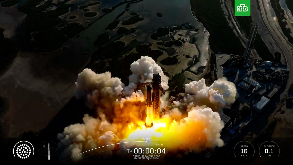 [ Смотреть видео на сайте НТВ ] Космический корабль Starship с ракетой-носителем Super Heavy отправился в 11-й по счету тестовый полет Космическая система Starship американской компании SpaceX благополучно отправилась в 11-й испытательный полет. Запуск провели со стартовой площадки Starbase компании SpaceX в Бока-Чика, это на юго-востоке штата Техас 13 октября в 19:23 по времени Восточного побережья США. По плану испытаний, корабль после одного витка вокруг Земли должен сойти с орбиты и мягко приводниться в Индийском океане к северо-западу от Австралии. Также Starship должен выпустить 8 макетов мини-спутников Starlink. Возвращаемая часть ракеты-носителя отделилась от корабля через 8 минут и успешно приводнилась на баржу в Американском (Мексиканском) заливе. Напомним, в августе прошел 10 испытательный полет Starship. Компания SpaceX тогда показала приводнение Starship, сопровождавшееся взрывом. В конце мая девятый пуск прототипа ракеты Starship закончился потерей ускорителя и корабля. В