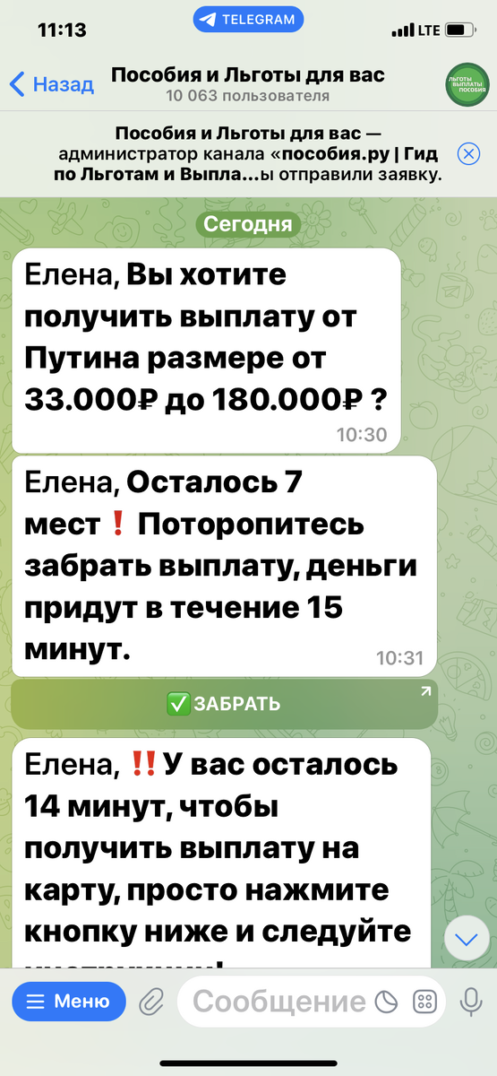 Прочитала обьявление ,где навязчиво предлагают деньги.Пишут в телеграмм канале в группе "Новости Читы и Забайкалья"о том ,что с15 октября начнутся компенсационные выплаты от государства.Размер зависит от возраста и города.Срок подачи заявления до 14 октября 2025 года.А сегодня как раз это число,кстати поздравляю с праздником покрова.Далее пишется : Минимальный размер выплаты 33000 т.р.,а Максимальный 180000 т.р.Ниже пишут "нажмите на свою категорию и узнайте положенную вам выплату.Я решила поинтересоваться про пенсионеров,хотя там есть и бюджетники,и сироты,школьники студенты,инвалиды,безработные,люди с заболеваниями и соц работники.И все...Полетели мне зазывалы ...нажмите поскорее кнопку "ДА"и получите в течении 15 минут деньги. Я села скорее писать статью ,чтобы предупредить всех наивных не поддаваться на такие уловки мошенников.А вам навязывали такую помощь?