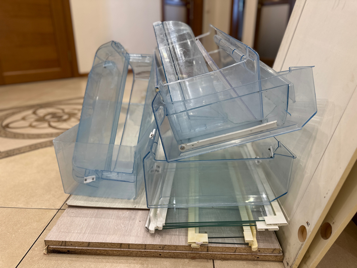 Но с тех пор нас стало пятеро (и далеко не новорожденных 😄) едоков, а холодильник за эти годы просто морально и физически "устал". Пластиковые контейнеры и выдвижные ящики во многих местах лопнули
