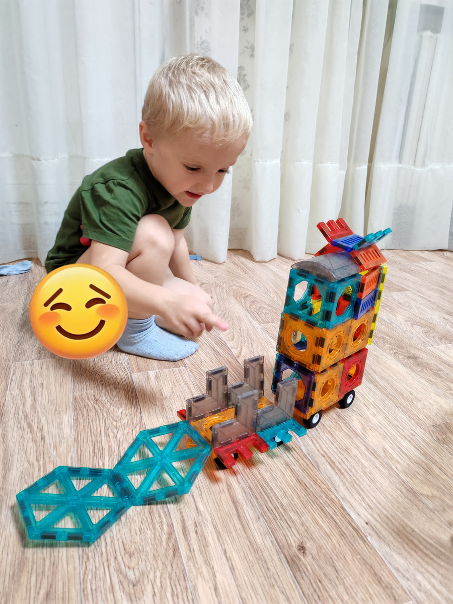 - Знает основные геометрические фигуры: круг, треугольник, квадрат. Это знаем благодаря магнитному конструктору🤣