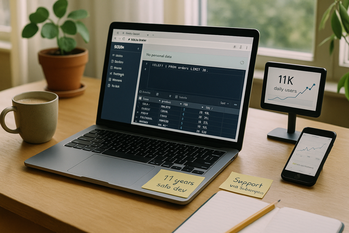 Таков путь SQLite Online — проекта, который один человек разрабатывает уже 11 лет, и которым ежедневно пользуются более 11 000 человек. SQLite Online — это веб-песочница для баз данных, где можно запускать SQL-запросы прямо из браузера. Без установки PostgreSQL, без Docker-образов, без криков “где у меня libpq.so?”. 🧠 Под капотом сервис поддерживает: Функциональность поражает: импорт/экспорт, история запросов, цветовые темы, поддержка разных схем и даже предупреждение о персональных данных — автор честно пишет, что не стоит заливать чувствительную информацию. Такой уровень прозрачности редко встретишь даже у коммерческих SaaS. То, что делает этот сервис особенным, — это его инженерная простота.