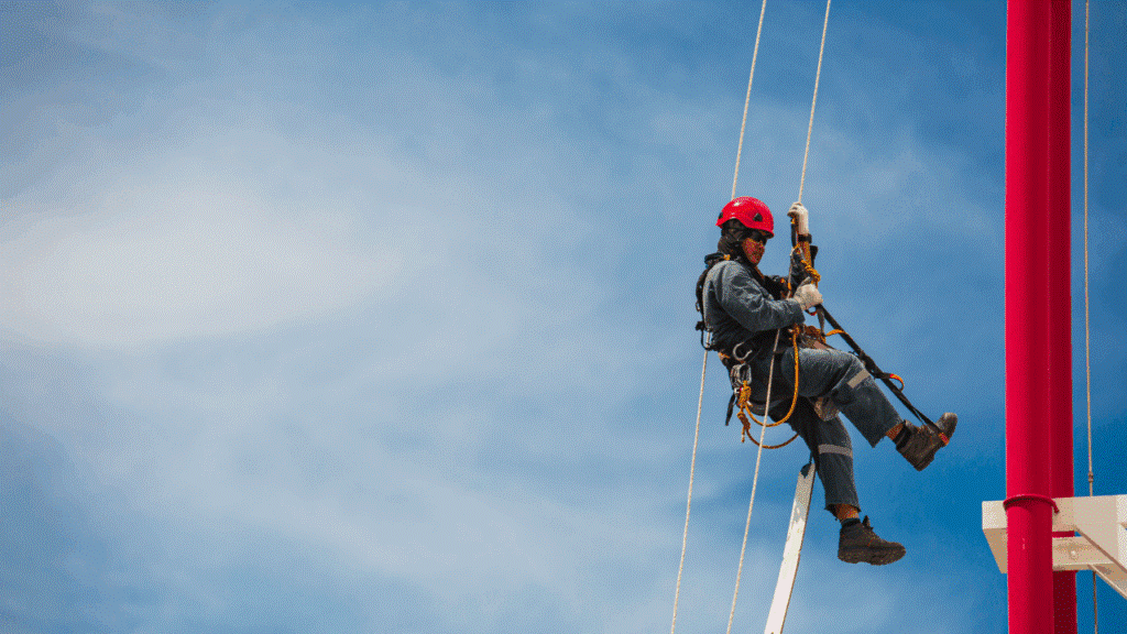 - Эвакуация и сигналы тревоги. В экстренных ситуациях работники должны знать пути быстрого, но безопасного спуска с высоты, понимать сигналы аварийной тревоги, уметь использовать спасательное оборудование (например, лебедки, специальные спусковые устройства).
