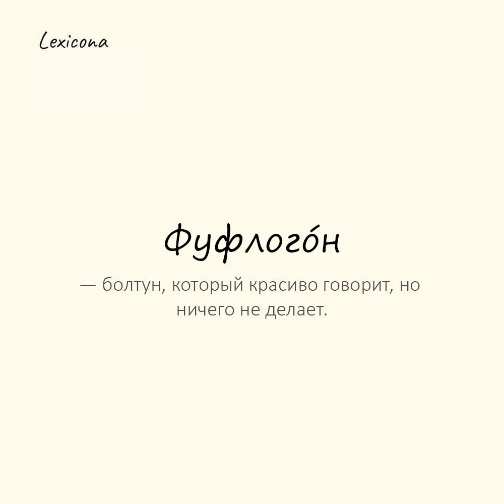 Фуфлогóн — болтун, который красиво говорит, но ничего не делает. 🤥 Пример употребления: Опять пообещал начать бегать с понедельника — фуфлогон. 🏃♂️❌ #фуфлогон #болтун #пустослов #обещания #ленивец #отмазка #говорун