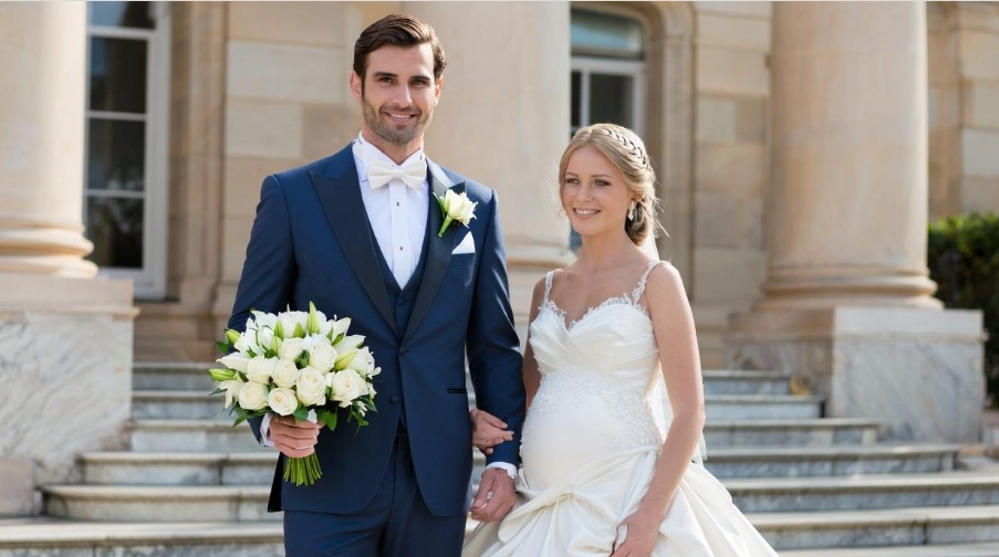 Карина замерла на пороге. Внутри было полно людей — мужчины в костюмах, женщины в нарядных платьях, кто-то держал бокалы с шампанским, кто-то смеялся. А в центре этого веселья стоял Максим. Максим в строгом костюме жениха, при бабочке, с букетом в руках. Рядом с ним девушка в белоснежном свадебном платье, светловолосая, хрупкая, с чуть округлившимся животом под кружевной тканью. Она смеялась, запрокинув голову, а Максим смотрел на неё с улыбкой.