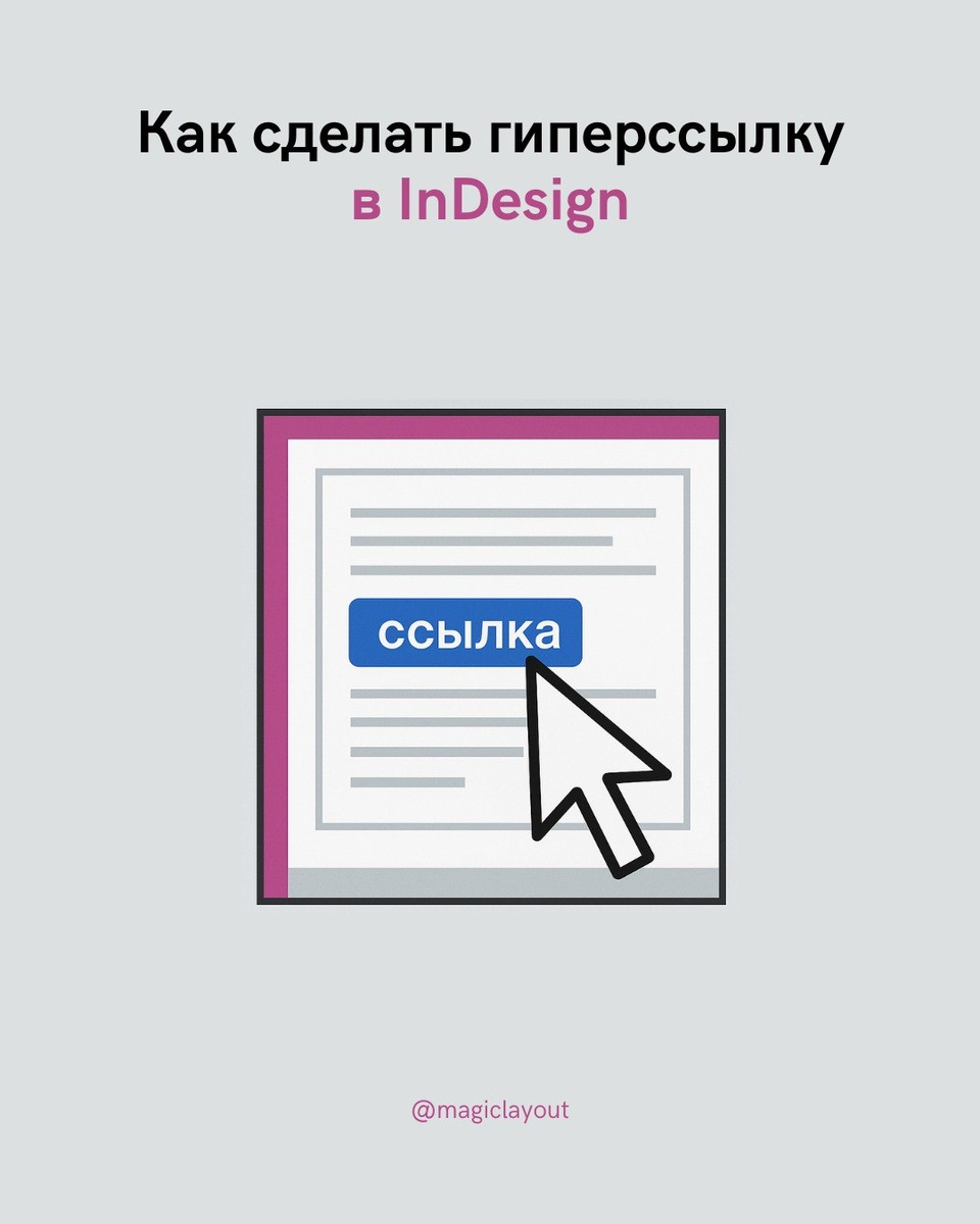 🔗 Как сделать гиперссылку в InDesign Гиперссылки в InDesign — это не только для PDF! Они позволяют делать интерактивные каталоги, журналы, книги и презентации. Разберёмся, как добавить ссылку шаг за шагом 👇 🔹 1. Выдели объект или текст Выбери текст, кнопку, логотип или любую фигуру, на которую нужно поставить ссылку. 🔹 2. Открой панель Hyperlinks Меню: Window → Interactive → Hyperlinks (Окно → Интерактивные → Гиперссылки) 🔹 3. Создай новую ссылку В панели Hyperlinks нажми New Hyperlink (Новая гиперссылка). В открывшемся окне: • выбери Link To: URL, • в поле URL вставь нужный адрес (например, https://xn--80ajjhbugiv.xn--p1ai/indesign), • поставь галочку Visible Rectangle, если хочешь, чтобы ссылка была выделена рамкой. 🔹 4. Проверь цвет и стиль ссылки Можно задать цвет рамки, толщину линии и стиль (подчёркнутый текст, обводка и т.д.). 🔹 5. Экспортируй в PDF (Interactive) При сохранении выбери: File → Export → Adobe PDF (Interactive) И обязательно проверь, чтобы ссылки