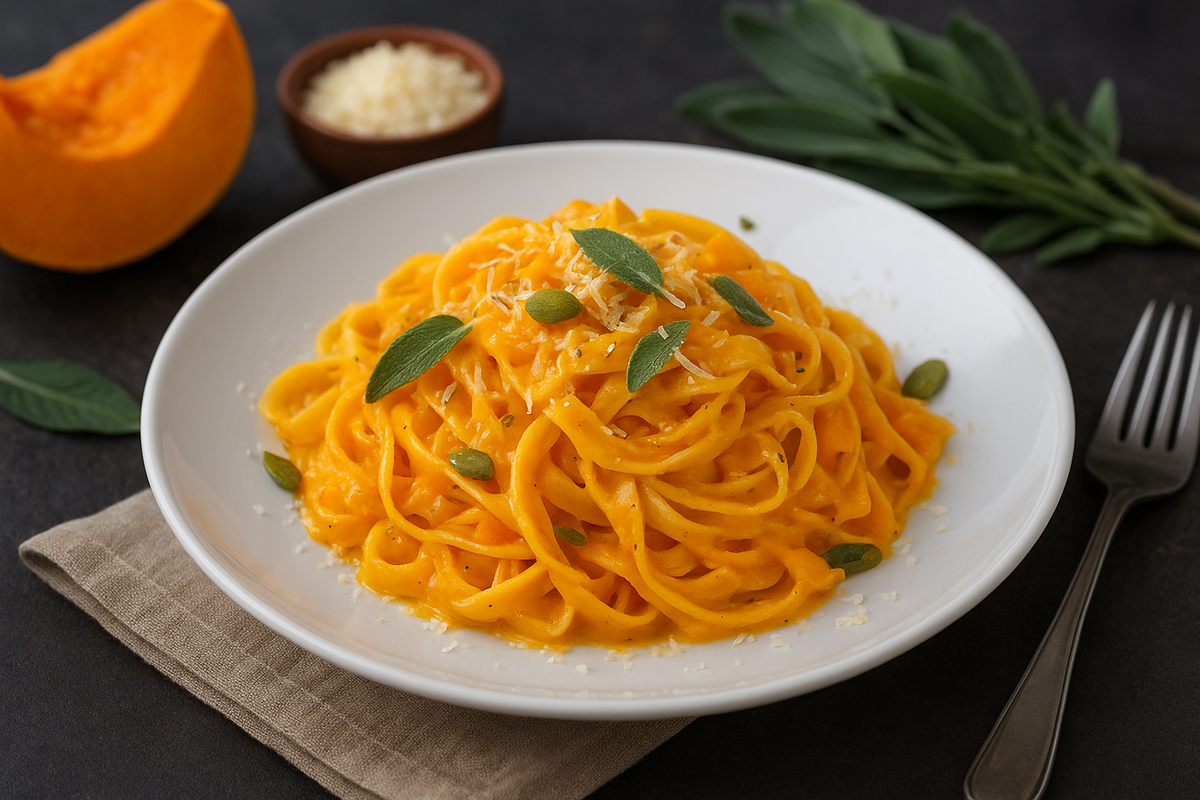 Осень — время, когда кухня наполняется ароматами запечённой тыквы, сливочного масла и свежих трав. А эта паста с тыквой и шалфеем — то самое блюдо, которое объединяет комфорт, вкус и простоту. Она выглядит как ресторанное, готовится за 25 минут, а по питательности отлично подходит даже для тех, кто следит за фигурой. 🛒 Ингредиенты (на 2 большие порции): 👩🍳 Как приготовить: 1. Подготовьте тыкву. Нарежьте тыкву небольшими кубиками. Выложите на противень, сбрызните оливковым маслом, слегка посолите и запеките при 200 °C около 20 минут, пока не станет мягкой. 2. Сделайте соус. На сковороде растопите сливочное масло, добавьте мелко нарезанный лук и чеснок, обжарьте до прозрачности. Добавьте запечённую тыкву и немного шалфея. Потушите пару минут. 3. Превратите всё в соус. Влейте сливки, добавьте щепотку мускатного ореха и 2–3 ст. ложки воды от варки пасты. Измельчите погружным блендером до кремовой консистенции. 4. Соберите блюдо. Отварите пасту до состояния аль денте, переложите в