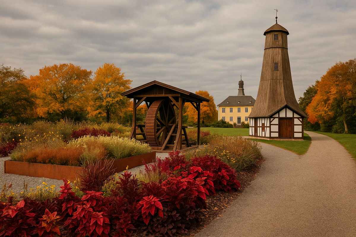 Осень в Бад-Раппенау особенная. Деревья переливаются медью и золотом, дорожки усыпаны листьями, а между клумбами и прудами вдруг появляется высокая деревянная башня, похожая на маяк. Это не просто башня — это буровая установка начала XX века, часть уникального исторического комплекса, где когда-то рождалась энергия будущего. Всё началось задолго до появления электричества. Чтобы добывать солёную воду, рабочие использовали огромное колесо — Tretrad, приводимое в движение мускульной силой. Люди буквально ходили внутри колеса, как в гигантском тренажёре, чтобы вращать буровые трубы и поднимать их на поверхность. Это было тяжёлое, изнуряющее занятие: на одно буровое отверстие глубиной около 1800 метров уходили тысячи шагов и неимоверное упорство. Колесо двигали 12–16 человек, меняясь между собой. Только представь — день за днём, час за часом, чтобы из недр земли поднялась солёная вода, давшая жизнь будущему курорту. Позже, в 1905 году, наступила новая эпоха. Человеческую силу начали