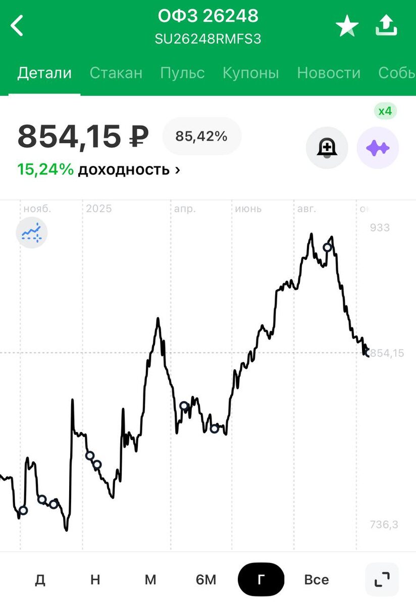 Продолжаю брать на #иис #офз из своей подборки с ежемесячными выплатами Январь, июль $SU26239RMFS2 - 6,9% Февраль, август $SU26240RMFS0 - 7,0% Март, сентябрь $SU26246RMFS7 - 12,00% Апрель, октябрь $SU26245RMFS9 - 12,0% Май, ноябрь $SU26247RMFS5 - 12,25% Июнь, декабрь $SU26248RMFS3 - 12,25% Сегодня беру $SU26248RMFS3 , так как там самый большой разрыв с прошлой ценой покупки - около 6% #новичок_в_пульсе #прояви_себя_в_пульсе