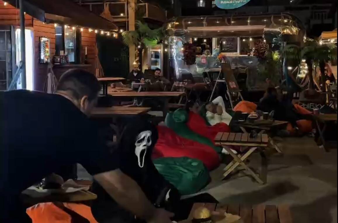 Кинопоказ в открытом кинотеатре напротив автовокзала