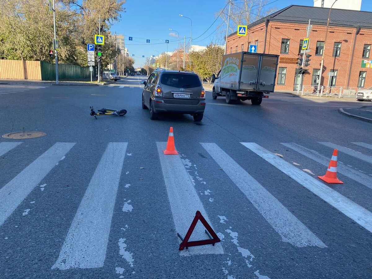 ❌ Вчера в Тюмени на ул. Свердлова, 5 столкнулись электросамокат и "Тойота". 17-летняя девушка на прокатном самокате, не спешившись, ехала по "зебре" на зеленый свет. 49-летний водитель "Тойоты" утверждает, что ехал на желтый. Школьница получила травму ноги. Выяснилось, что у водителя "Тойоты" поддельные права. Автомобиль эвакуирован, водитель привлечен к ответственности. Обстоятельства ДТП выясняются.