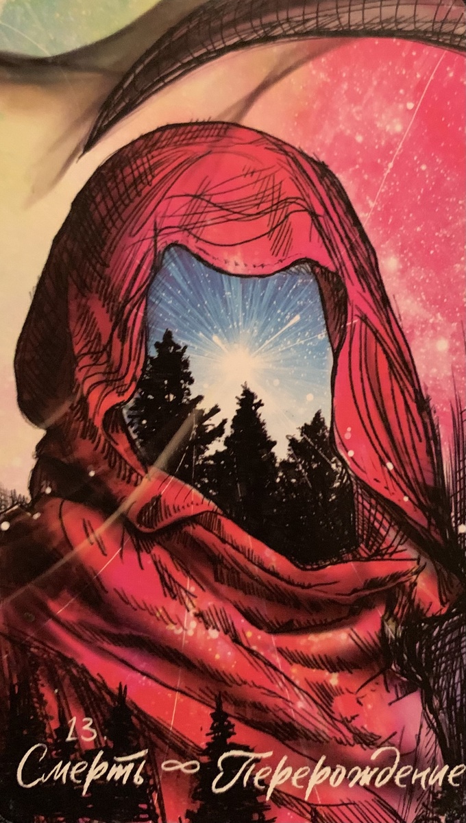 Впустите нечто новое и с миром отпустите завершившееся. Взгляните на волшебство этих новых горизонтов: ведь карта Смерти, несмотря на ее мрачный вид, вестник волнующих событий, наполненных возможностями! Впереди сияет нечто новое.