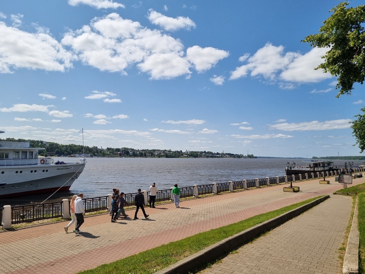 - Величественную набережную Волги и церковь Спаса в Гостином дворе