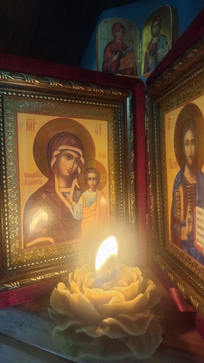 Друзья, в честь праздника Покров Пресвятой Богородица, у нас горит свеча у иконок