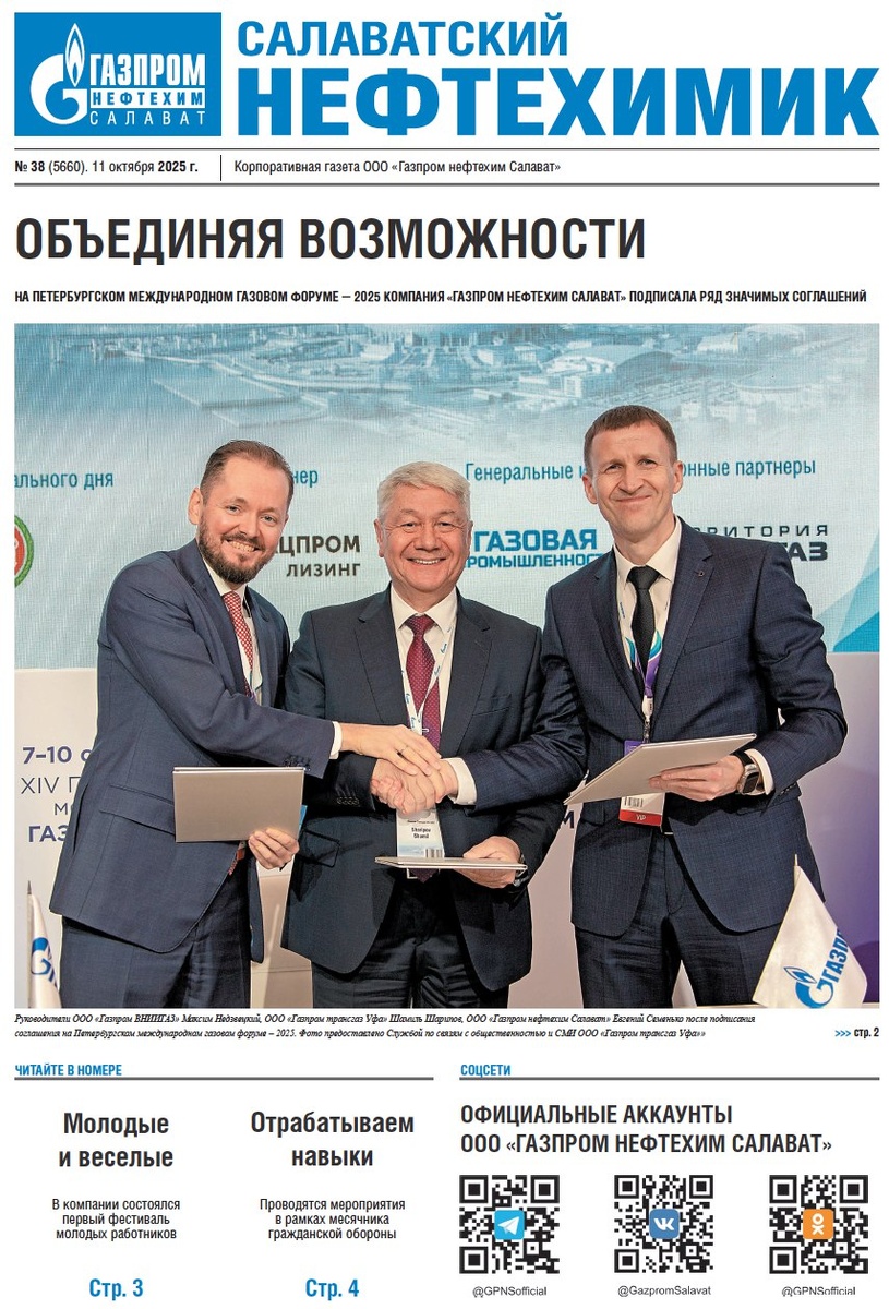 Новый номер корпоративной газеты #ГазпромнефтехимСалават на сайте компании👇 https://salavat-neftekhim.gazprom.ru/d/journal/2c/556/25-10-11.pdf