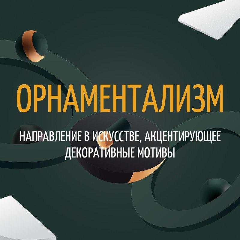 ОРНАМЕНТАЛИЗМ направление в искусстве, акцентирующее декоративные мотивы Орнаментализм — художественный стиль, в котором центральную роль занимает узор, ритмически повторяющиеся элементы и декоративные мотивы. Возник в прикладном искусстве (керамика, текстиль, мебель), а позже стал проникать в живопись и архитектуру. Для орнаментализма важно не изображение реального объекта, а создание гармонии линий и форм. В русском искусстве конца XIX — начала XX века он проявился особенно ярко: работы Виктора Васнецова и Михаила Врубеля буквально переполнены сложными декоративными сетками. В фарфоре орнаментализм встречается в изысканных сервизах с роскошной росписью, где сам предмет становится частью орнамента. Орнаментальные блюда или кувшины часто служили не утилитарной, а парадной функции — например, знаменитый «царский стол» был набит такими фарфоровыми шедеврами. Главный прием — игра с геометрией, цветовыми пятнами и повторяемостью: глядя на такой предмет, человек словно попадает в калейдос