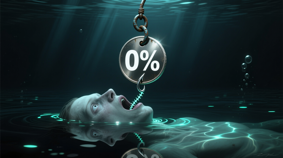 Банк громко заявляет о 0%, но мелким шрифтом указывает, что это акция на ограниченный период. После трёх месяцев ставка подскакивает до 20-25%, что выше, чем по вашим исходным кредитам.