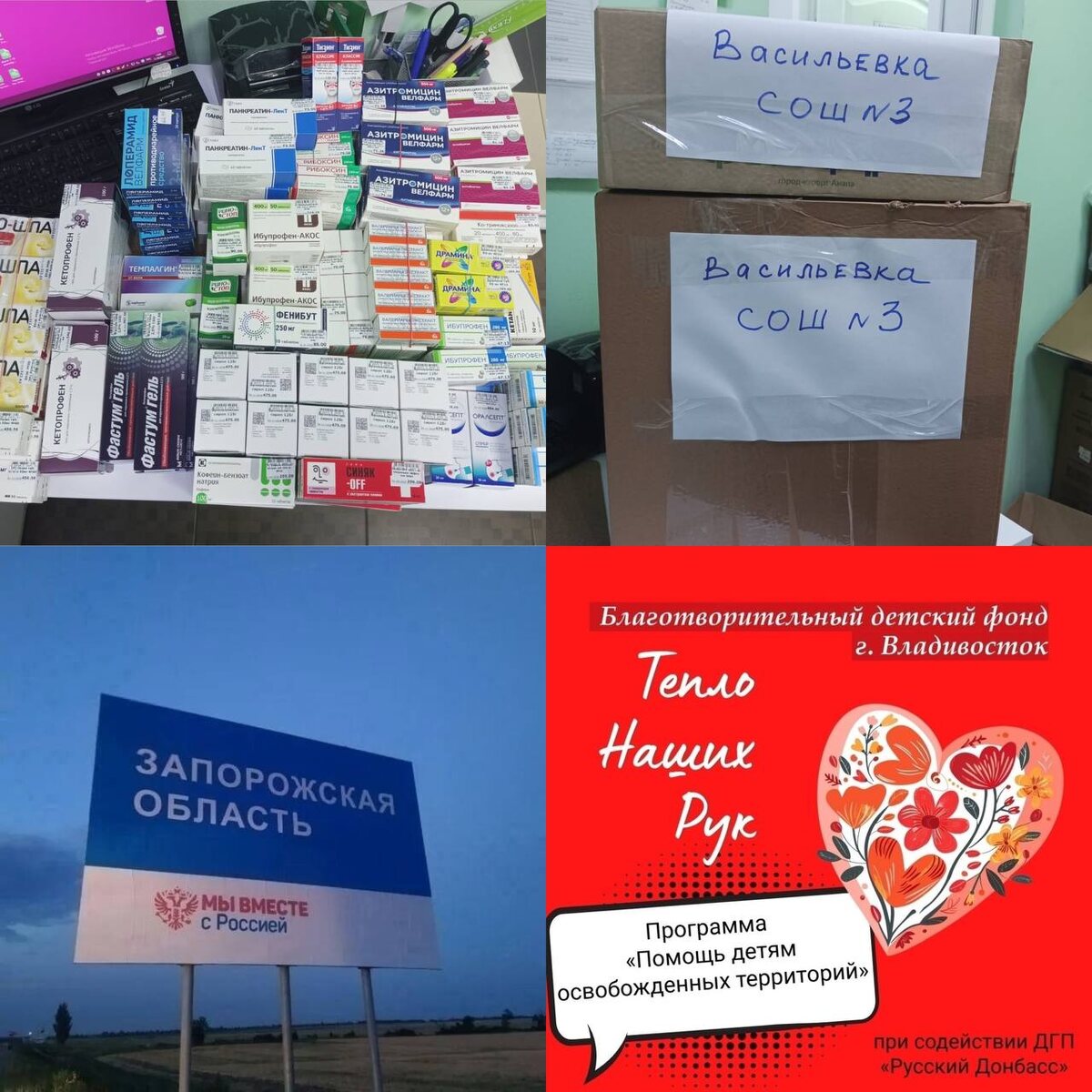 Передали шестую партию лекарств для Васильевской школы N3 Запорожской области благодаря Фонду «Тепло наших рук» Владивосток, который