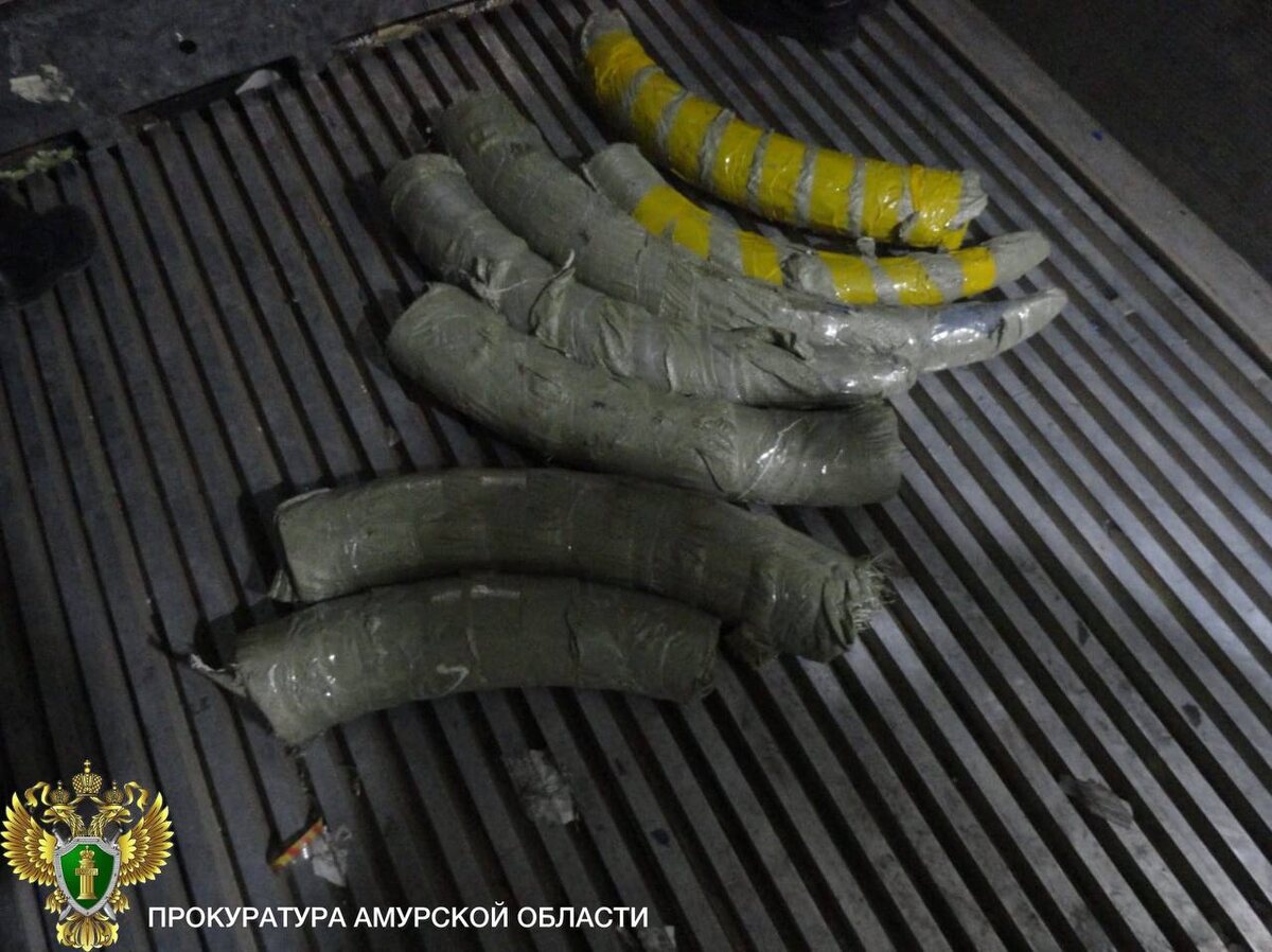 Восемь бивней мамонта весом 116,05 кг на три млн рублей хотели вывезти из Амурской области