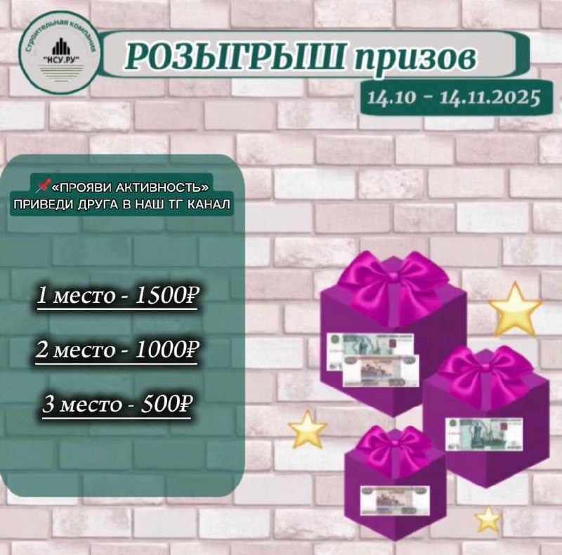 📌ВНИМАНИЕ РОЗЫГРЫШ. Правила участия просты: ✅Быть подписчиком нашего телеграмм канала; ✅Приведи друга (подругу). Чем больше друзей приведёшь, тем больше шанс попасть в тройку лучших; 🤩 ❗️Отправляйте мне контакт вашего человека в личку➡️ https://t.me/Oliay0202 Я добавлю его в чат и присвою номерок вам и вашему другу. Итоги розыгрыша будут проводиться 14 ноября 2025г. «ВСЕМ УДАЧИ, ЖДУ ВАШЕЙ АКТИВНОСТИ»✨