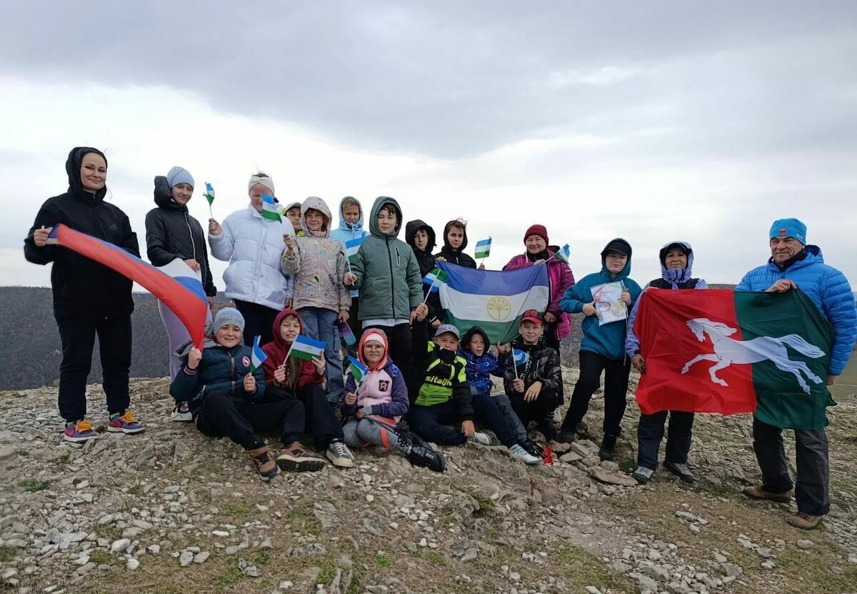 Школьники Уфимского района подняли флаги на скалу Уклы-Кая