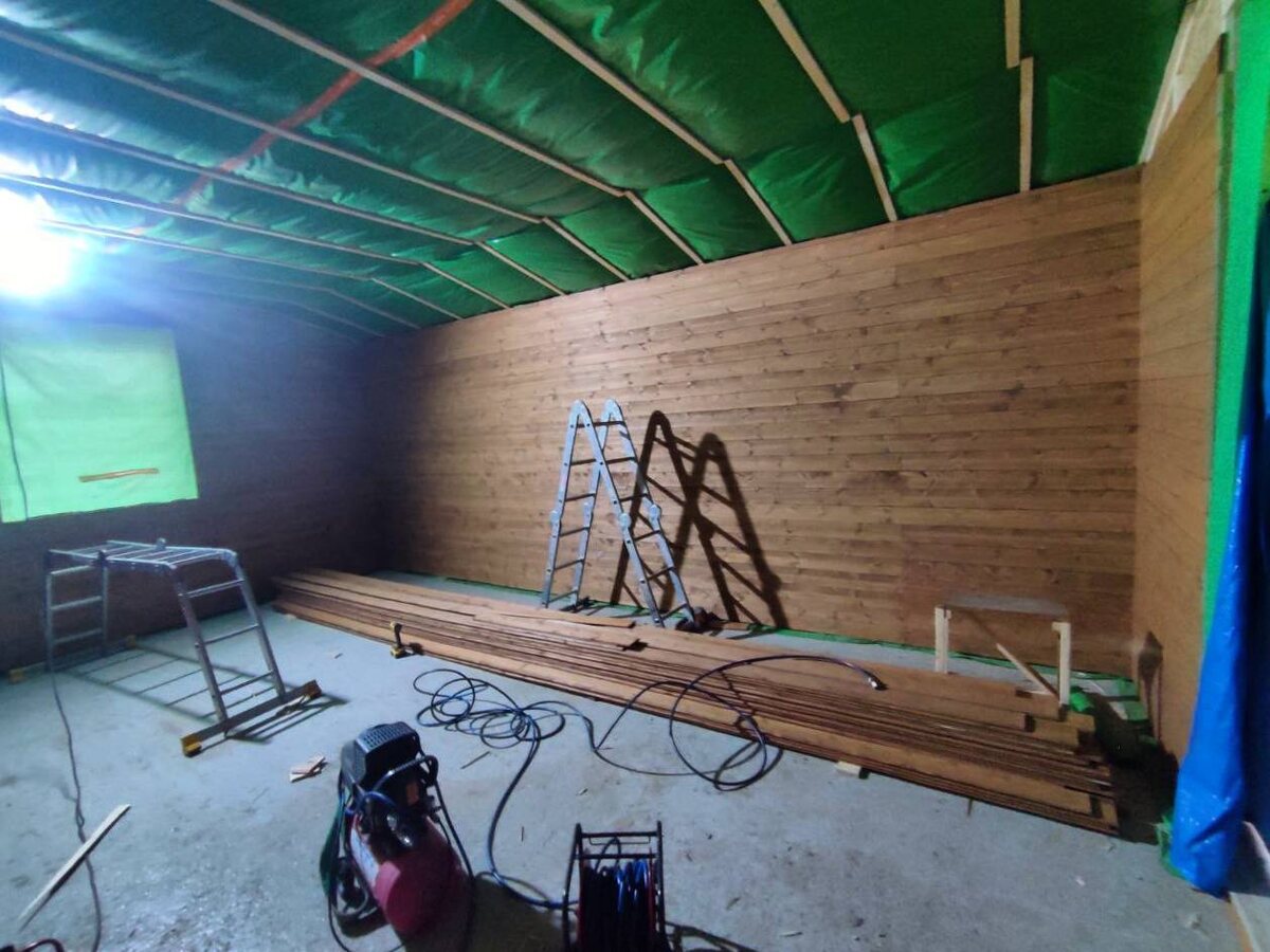 Близится финал, сегодня приступаем к потолку. Вчера электричества до обеда не было, но даже это не помешало выполнить Обьем по стенам. Работаем.