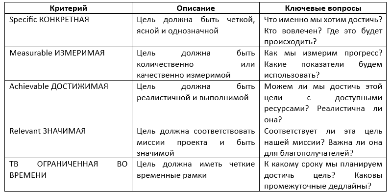 2. Отсутствие измеримых показателей: формулировки вроде «улучшить ситуацию» или «повысить осведомленность» невозможно измерить и, следовательно, невозможно оценить эффективность.