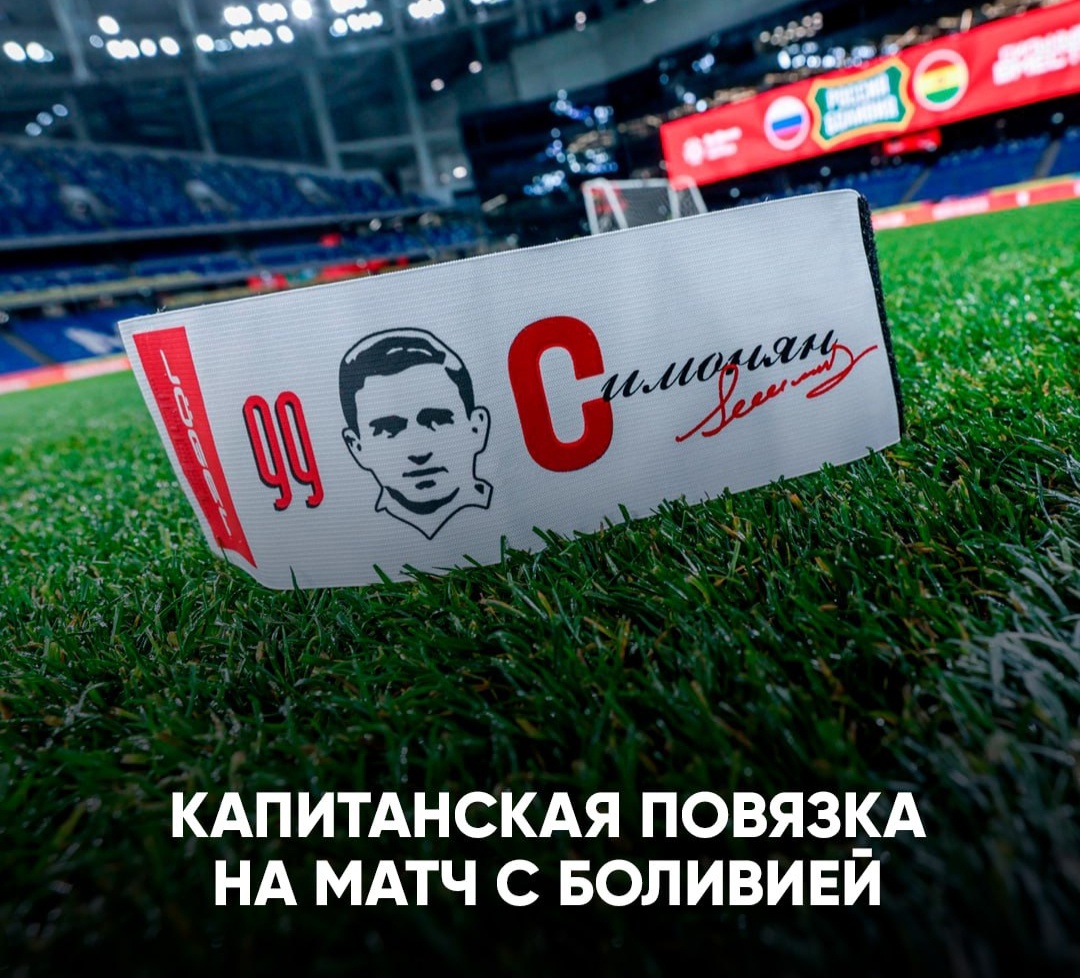 Сегодня сборная России по футболу проведёт матч против сборной Боливии. А 12 октября Никите Павловичу Симоняну исполнилось 99 лет, с чем его от всего сердца и души поздравляем, я болельщик Спартака и для меня это особо важный фактор. К этому знаменательному дню сборная России подготовила специальную капитанскую повязку. И большой вопрос кто будет сегодня капитаном и кому доверят нести эту ответственность сегодня, разумно предположить , что это будет игрок Спартака, что было бы очень символично. Но где логика у Валерия Георгиевича Карпина , мы все прекрасно знаем. Хотя имея Спартаковские корни, он должен учитывать важность этого момента. Если учесть что вызов получили только три игрока Спартака ( Максименко, Литвинов,Умяров), то больше шансов выйти с капитанской повязкой имеет вратарь Александр Максименко, вероятность появления двух игроков спартаковцев в основе очень мало вероятно, по ряду причин. По моим предположениям , даже если на поле выйдет хотя бы один игрок московского Спарта