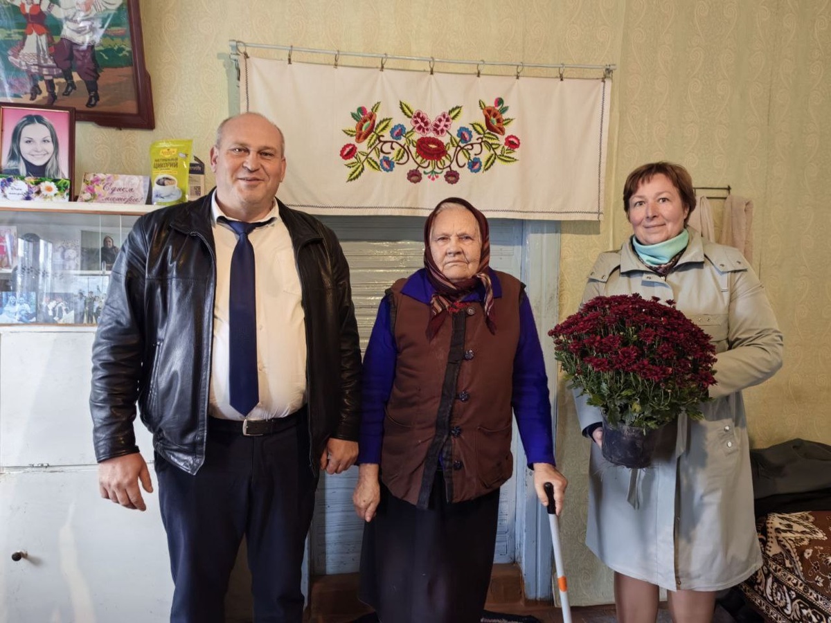 Сегодня работники Ольшанского сельисполкома поздравили Драпей Анну Адамовну с Днём Матери