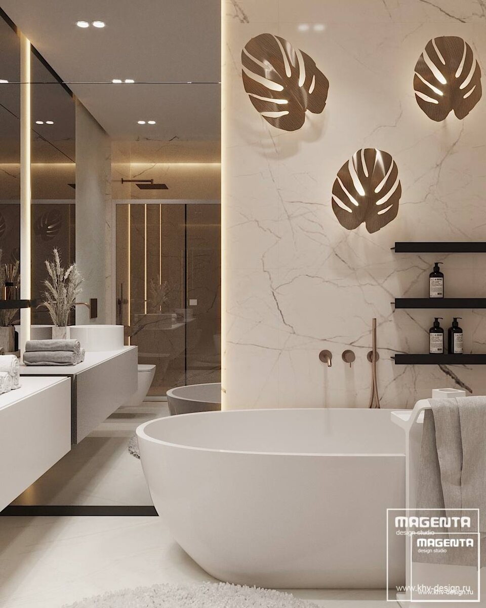 Простота и элегантность в каждой линии — эскизы санузла от Magenta Нежная игра света, натуральный камень и лаконичные формы создают атмосферу умиротворённого уюта и премиального комфорта. Здесь нет ничего лишнего — только продуманные детали, функциональность и эстетика, которая не теряет актуальности с годами. Прикоснитесь к дизайну класса А: портфолио реализованных проектов — на сайте magentastudio.ru Magenta