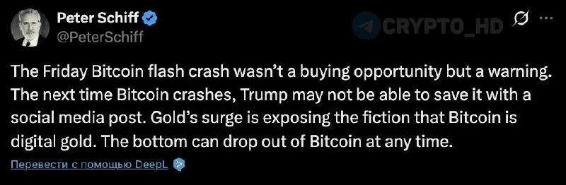 🤔 Питер Шифф: Пятничный обвал Биткоина – это не шанс купить дешевле, а предупреждение