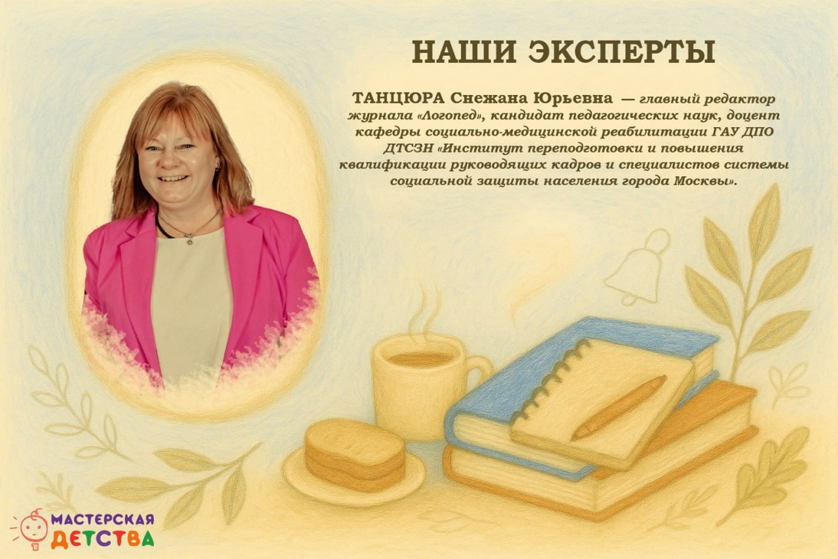 💌 Сегодня представляем Снежану Юрьевну Танцюру — кандидата педагогических наук, доцента кафедры социально-медицинской реабилитации ГАУ ДПО ДТСЗН «Института переподготовки и повышения квалификации руководящих кадров и специалистов системы социальной защиты населения города Москвы», главного редактора журнала «Логопед».