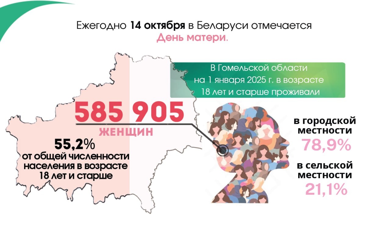 👩В Гомельской области женщины составляют 55% населения Специалисты Главного статистического управления Гомельской области подготовили обзор ко Дню матери.